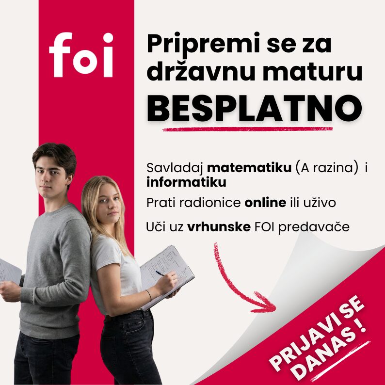 Fakultet organizacije i informatike (FOI), sastavnica Sveučilišta u Zagrebu, i ove godine otvara svoja vrata svim maturantima i organizira besplatne pripreme za državnu maturu.