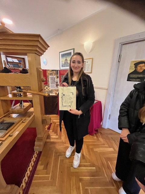 Povodom Dana reformacije učenici Dodatne nastave iz Katoličkog vjeronauka posjetili su protestantsku zajednicu: Kristovu crkvu u Varaždinu, u kojoj su razgledali različite povijesne primjerke izdanja Biblije, poslušali kratko predavanje protestantskog pastora i protestantskog profesora bibličara, te izradile list biblijskog teksta na kopiji stroja za tiskanje Johannesa Gutenberga izumitelja tipografije u Europi.