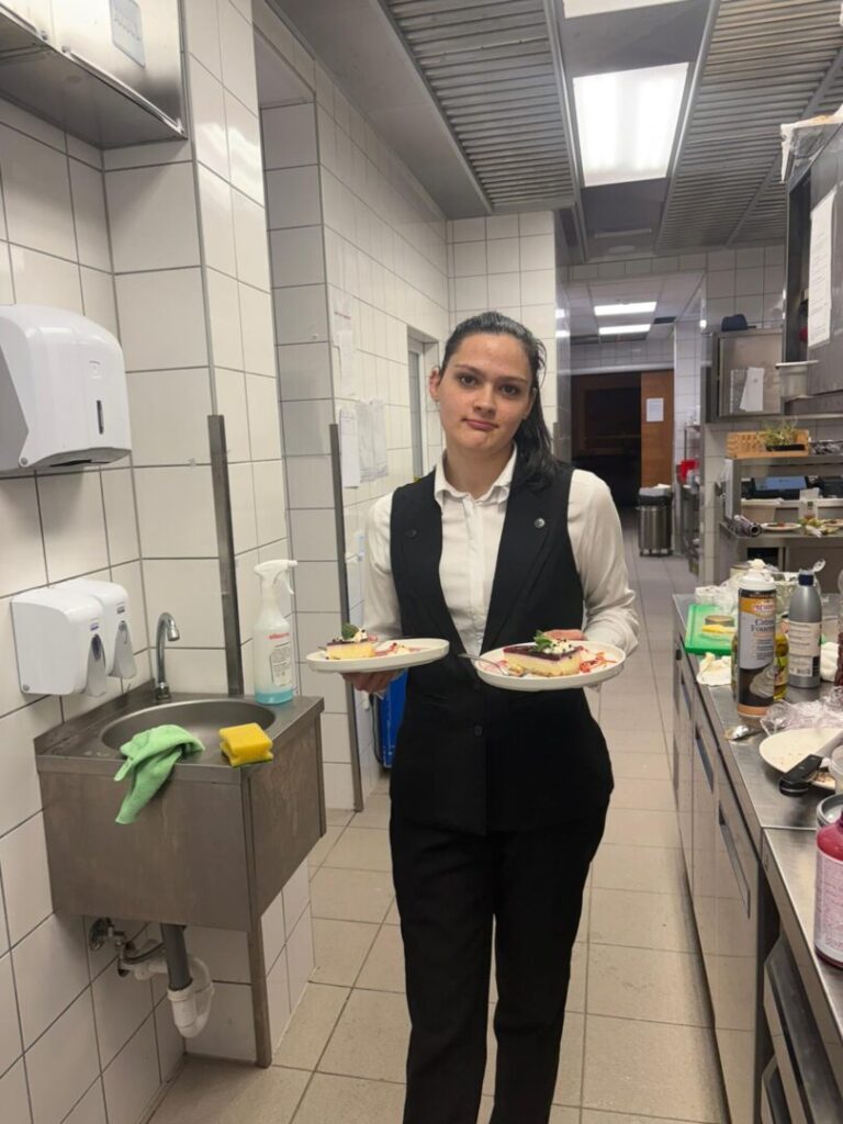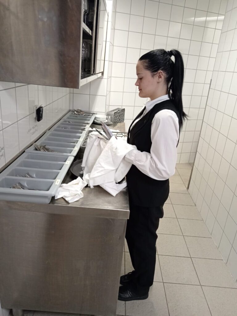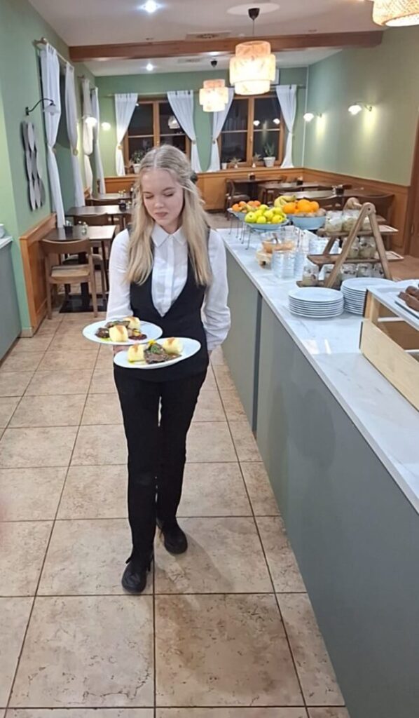 Učenici konobari Nikolina Foder, Nikolina Rodeš i Sandra Korpar usavršavali su svoje vještine u posluživanju gostiju – od postavljanja stolova i pripreme inventara do komunikacije s gostima, zaprimanja i naplate narudžbi. Kroz rad su razvijali profesionalnost, točnost i ljubaznost, što su ključne kompetencije u ugostiteljstvu.