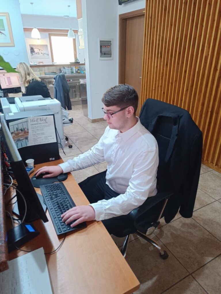 Učenici hotelijeri Ana Glavak, Rok Balažinec, Leda Kuščar, Marta Presečki i Leona Bajs radili su na recepciji i u wellness odjelima hotela, gdje su se upoznali s procesima prijema gostiju, upravljanjem rezervacijama te pružanjem dodatnih usluga. Time su stekli cjelovit uvid u funkcioniranje hotelskog sustava i važnost međusobne suradnje različitih odjela.