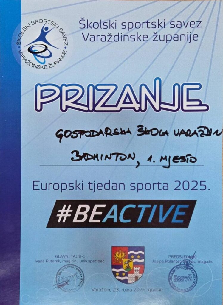 Našu školu , odnosno naše školsko sportsko društvo GOŠK su predstavljali Nikolina Leskovar te Marko Vrbanec u igri mješovitih parova u badmintonu te osvojili 1. mjesto i zlatnu medalju u vrlo jakoj konkurenciji. Na manifestaciji su bili i nastavnici Ivan Štimac,prof., voditelj i mentor naše pobjedničke ekipe te Dubravka Kunić,prof. koja je uz prigodnu glazbu zagrijala sve sudionike ove manifestacije. Nacionalni koordinator za provođenje ove inicijative pokrenute 2015. godine je Ministarstvo turizma i sporta RH.