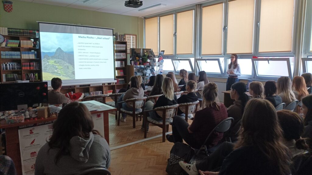 U školskoj knjižnici održano je zanimljivo putopisno predavanje povodom Dana žena. Profesorica hrvatskoga jezika i povijesti Ivana Vrček iz OŠ Lepoglava učenicima je predstavila čarobne predjele Perua i Paname, vodeći ih na virtualno putovanje ispunjeno prirodnim ljepotama, bogatom poviješću i kulturnom baštinom.