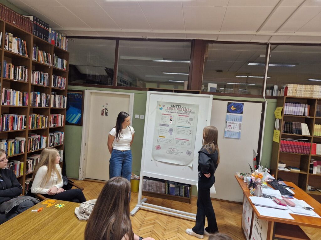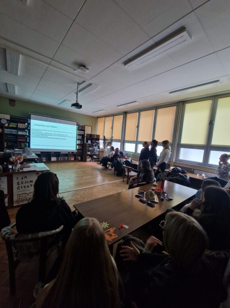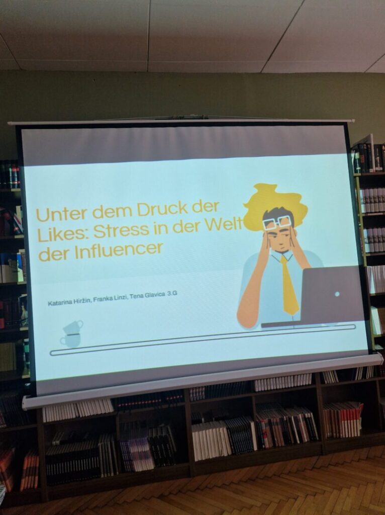 Učenici 1. A i 3. G razreda Gospodarske škole Varaždin sudjelovali su u projektu „Unter dem Druck der Likes: Stress in der Welt der Influencer“ koji je proveden 14. travnja 2026. u školskoj knjižnici.